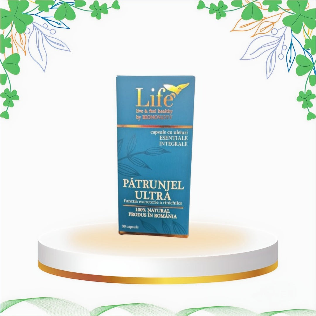 Capsulele cu ulei de Pătrunjel Ultra sunt foarte concentrate, ușor de administrat, având un echilibru perfect între uleiurile vegetale grase și cele esențiale, pentru a avea o biodisponibilitate ridicată. Uleiul esential de patrunjel este subiectul unor studii de medicina experimentala, fiind cercetat ca actiune asupra sanatatii sistemului urinar predispus la litiaza, dar si asupra proceselor inflamatorii cronice.