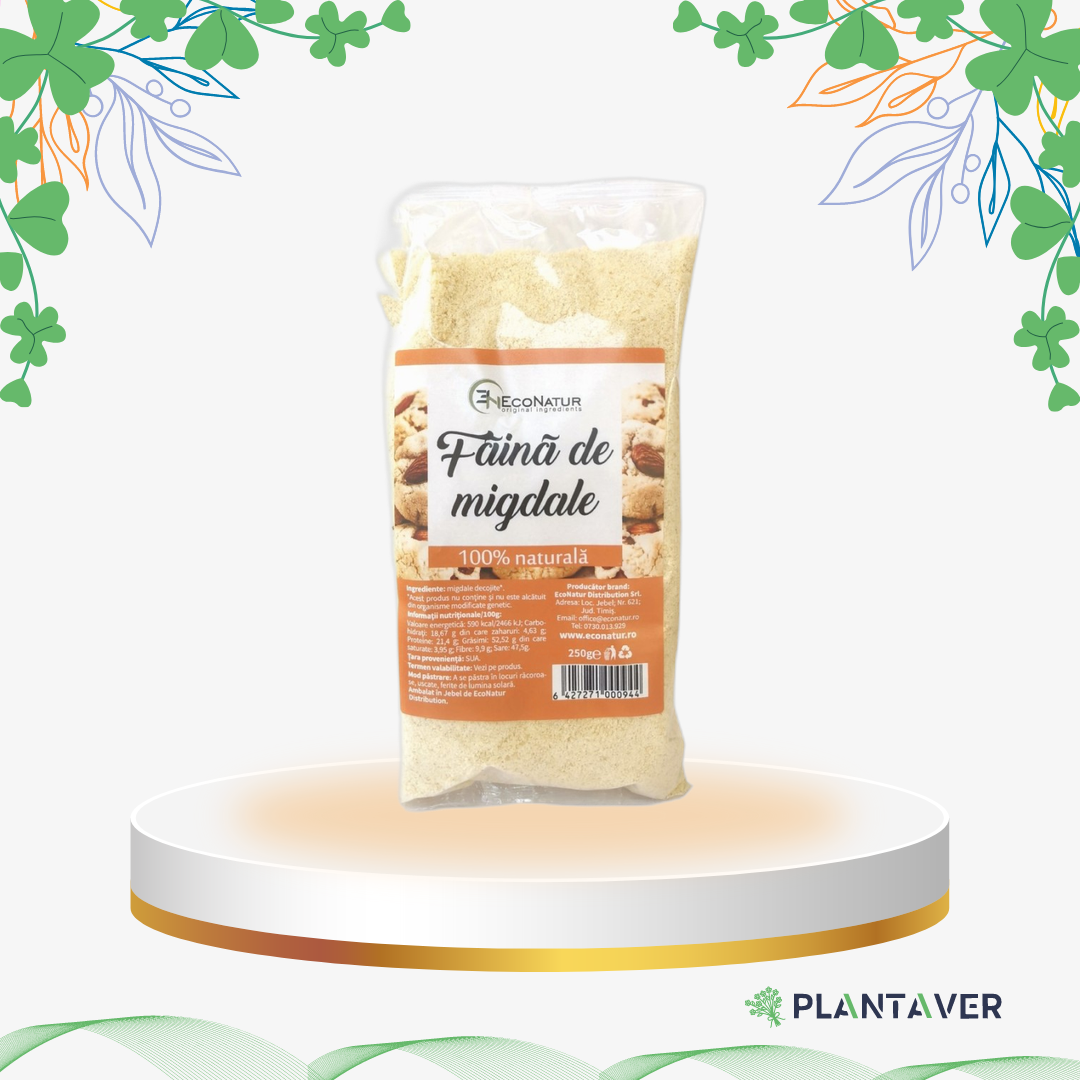 Făina de migdale are un gust deosebit, poate fi folosită pentru prepararea unor deserturi şi dulciuri delicioase. Ideala pentru copt, se poate utiliza pe scară largă pentru produse de panificaţie. Se poate amesteca cu alte făinuri.