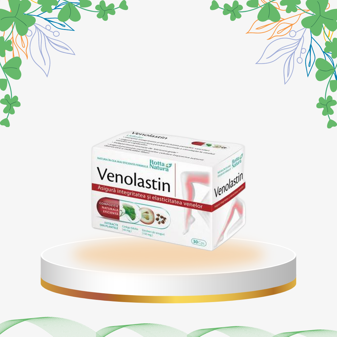 Venolastin este un complex natural eficient care asigură elasticitatea și integritatea pereților venelor. Asocierea extractului de Sâmburi de struguri și extractului de Ginkgo biloba, face din Venolastin un produs inovator care acționează în două direcții: una de ameliorare și îmbunătățire a tonusului sistemului vascular iar alta, de optimizare a circulației și de oxigenare a țesuturilor. El reduce permeabilitatea vasculară, menține elasticitatea venelor și are o acțiune antioxidantă de reducere a radicalilor liberi.